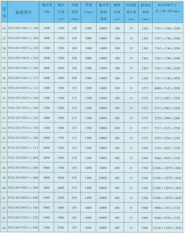 3、煤礦井下用可伸縮帶式輸送機主要技術(shù)參數(shù):